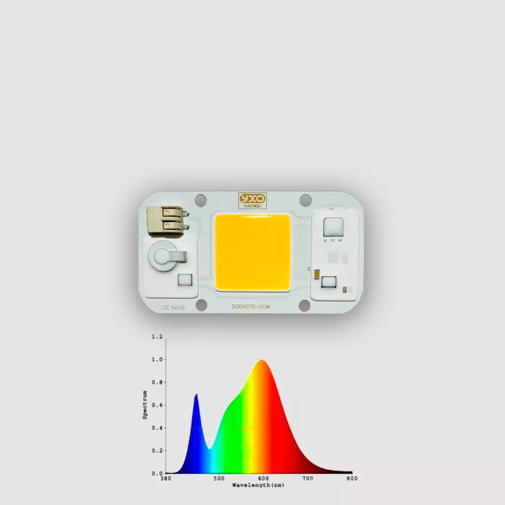 50W REALES, sin driver. Se conecta directo a 220v. Con bornera incluida.